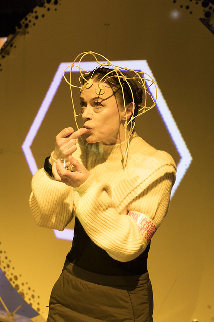 Syvyysvaikutelmaltaan pitkälle viety lavastus ja siihen projisoidut visuaalit luovat pienestä näyttämöstä lumoavan ja futuristisen tilan. Työryhmä luo immersoivan kokonaistaideteoksen, joka ammentaa inspiraationsa muun muassa videopelimaailmasta, käsitetaiteesta ja populaarikulttuurista.